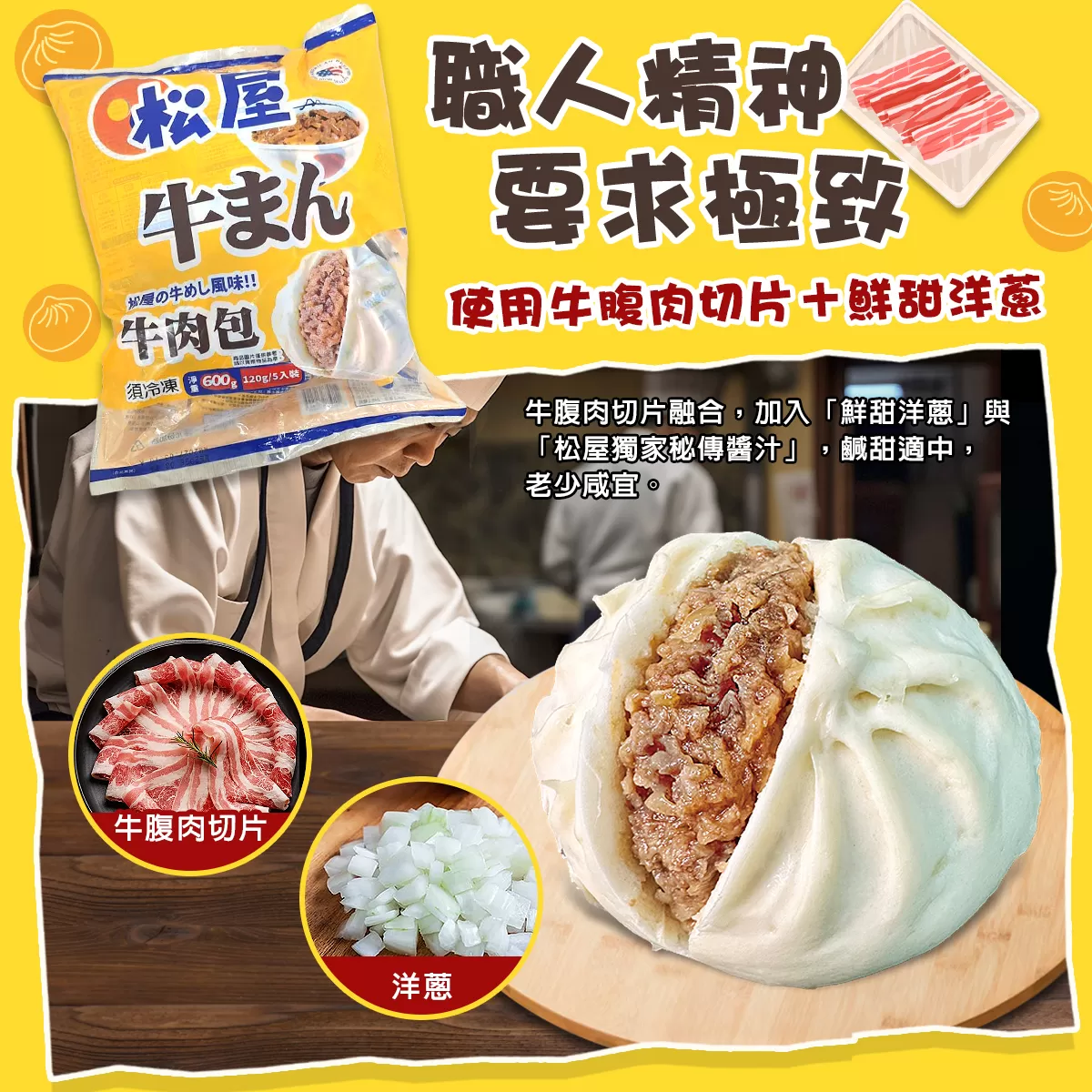用傳統碎肉餡,直接選用松屋店內最受歡迎的「切片牛腹肉」,口感扎實、肉香滿溢。