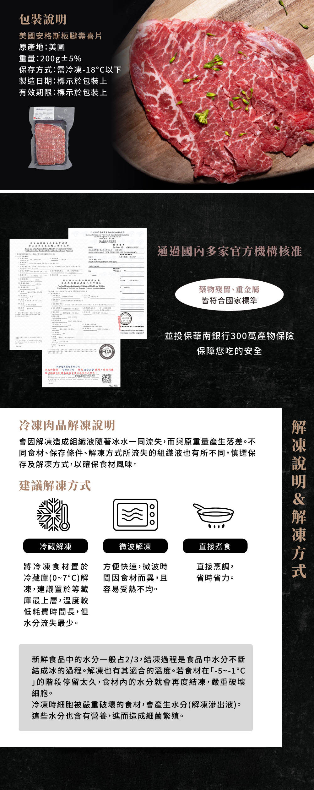 *建議解凍方式 冷藏解凍:將冷凍食材至於冷藏庫(0~7°C)解凍,置於等藏庫最上層